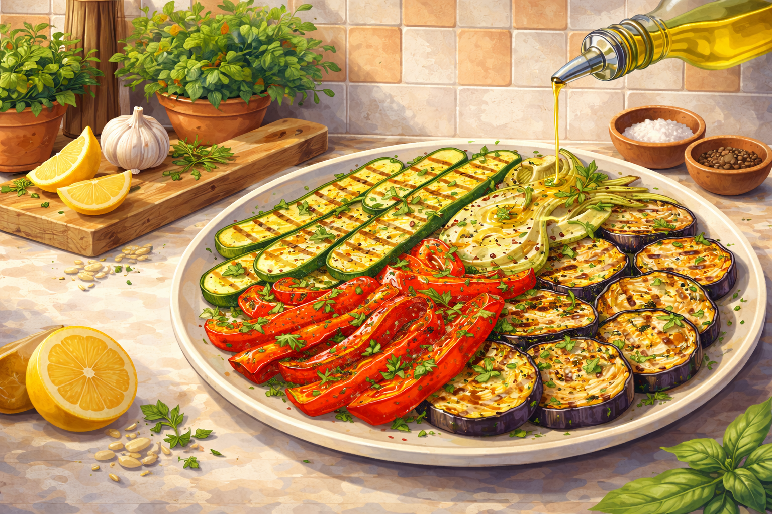 This dish is a hymn to the Mediterranean summer. Grilling vegetables is not just