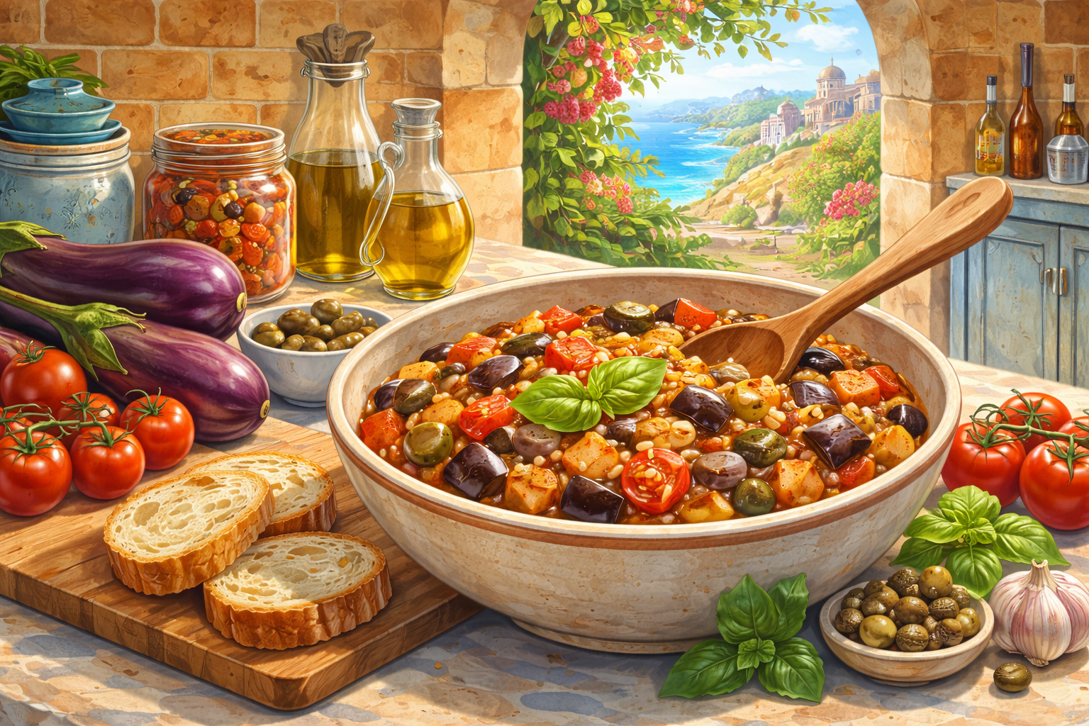 Caponata is Sicily’s most emblematic vegetable dish — a dazzling interplay of sweet and