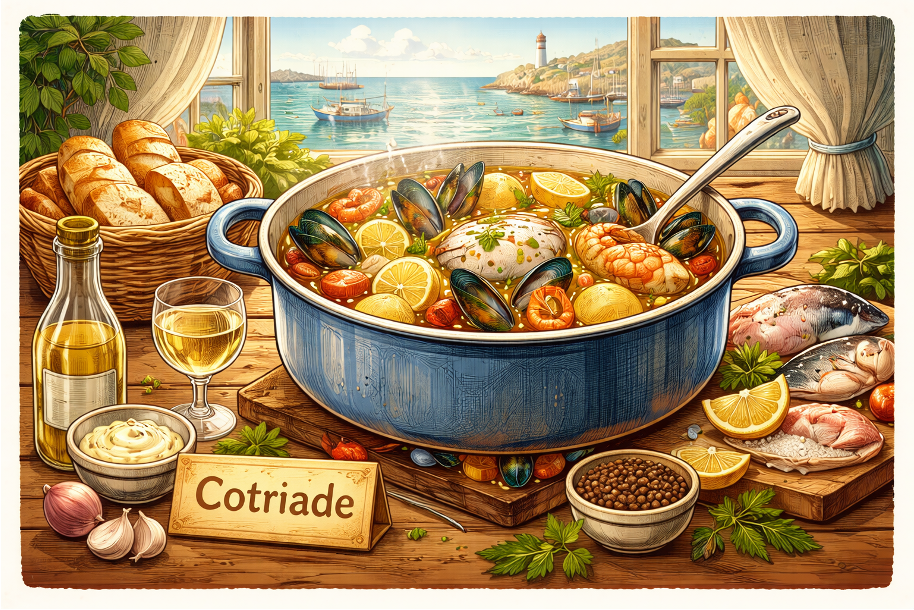 Cotriade is a traditional fish stew from Brittany, France, similar to bouillabaisse but with