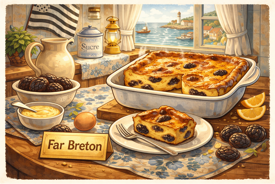A beloved dessert from Brittany, Far Breton is a rustic baked custard with a