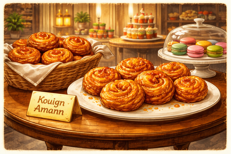 Originating from Douarnenez in Brittany, Kouign-Amann (pronounced queen-ah-mahn) is a decadent, caramelized pastry that’s