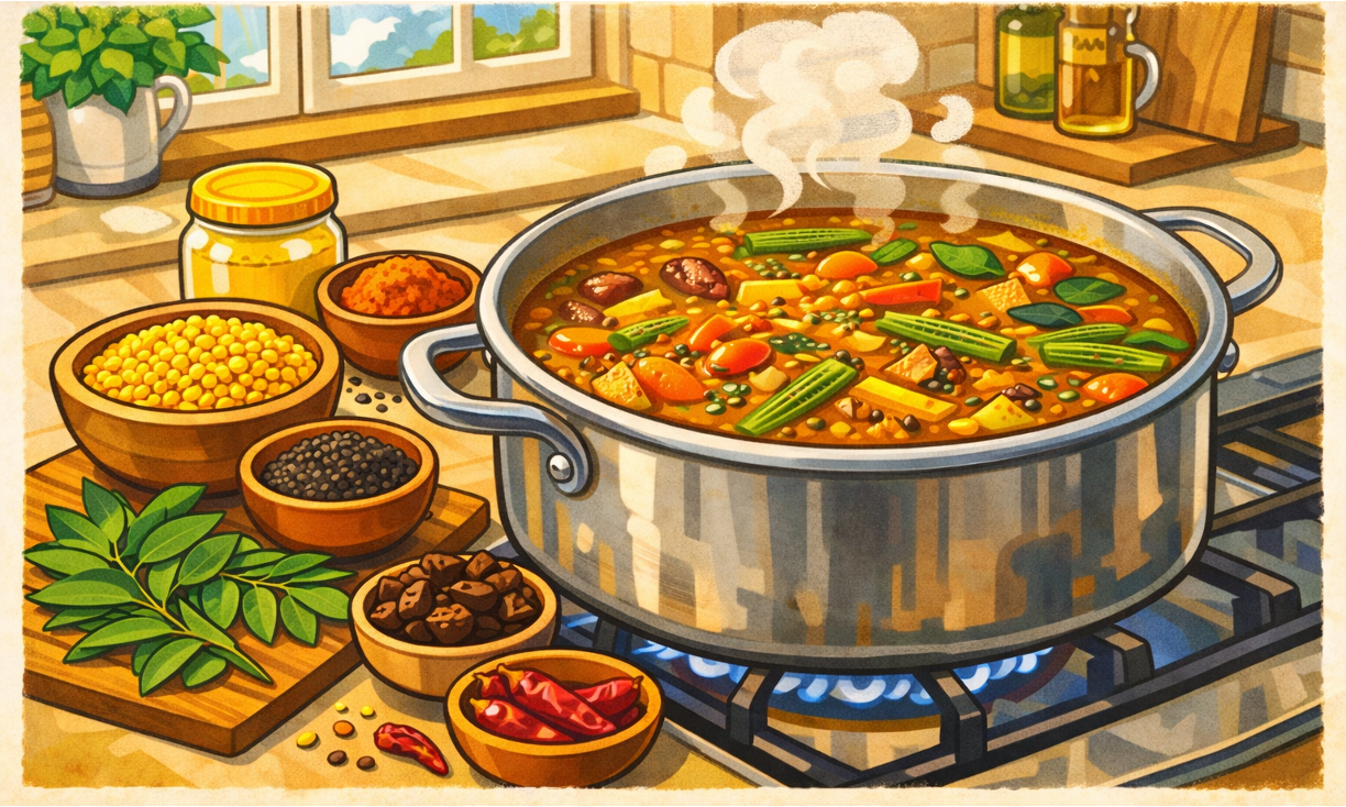 Sambar is the heart of South Indian cuisine—a fragrant, tangy, and nutritious lentil stew