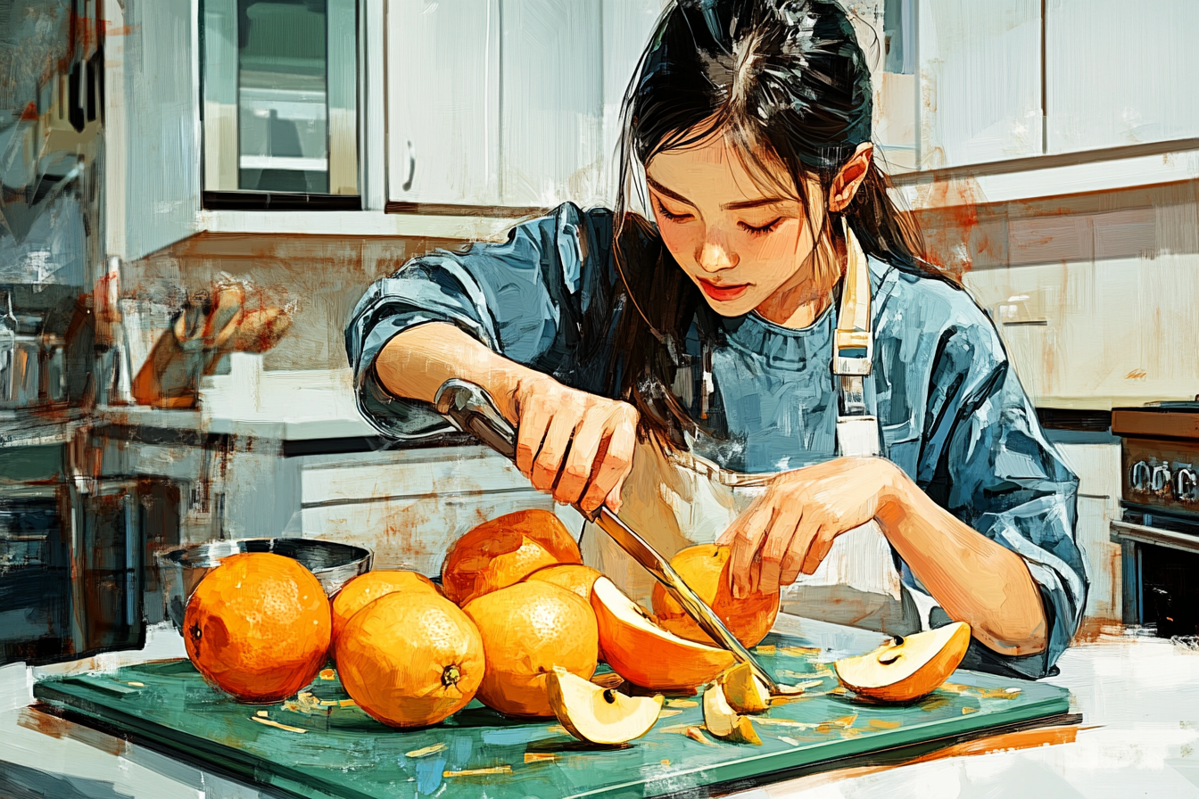 I stand in my kitchen, a butternut squash in one hand and a peeler