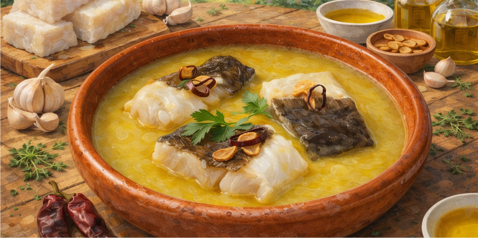 Bacalao al pil-pil relies on impeccable ingredients. The cod must be properly desalted, firm yet moist, with skin intact. Extra virgin olive oil provides both flavor and structure, while garlic and dried chili add aroma without dominating. In Basque kitchens, cooks insist that nothing more is needed because adding anything extra would distract from the delicate balance that defines the dish.