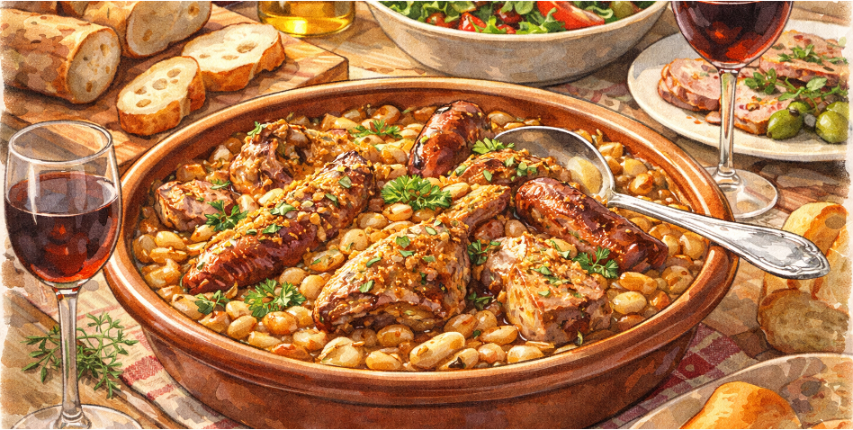 Cassoulet is not simply a bean stew. It is architecture, and patience. And rural France codified into a clay pot.