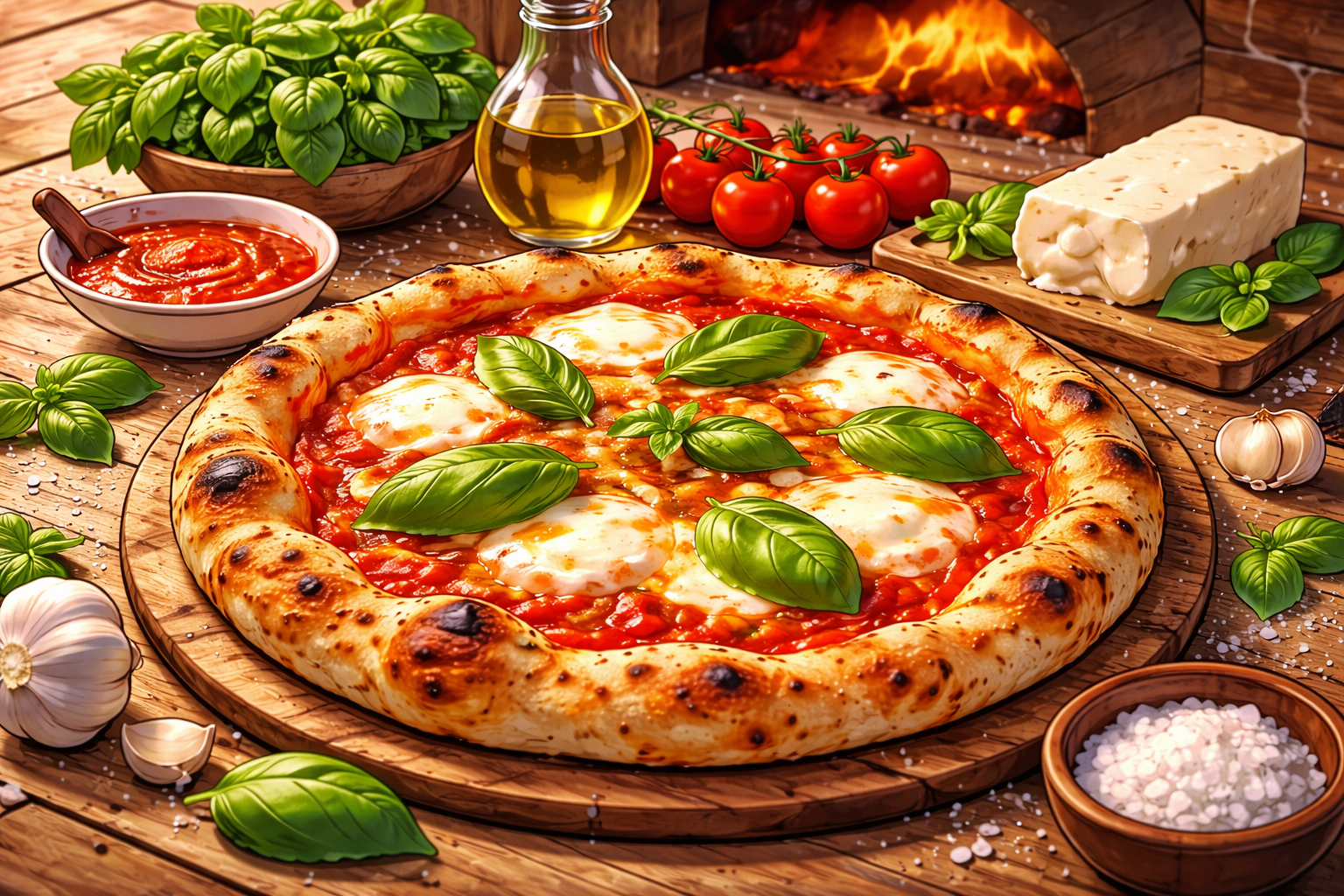 At its heart, Margherita is a dialogue between dough, tomato, mozzarella, and basil. There is no embellishment, no extra toppings, no flourish. This restraint is what makes the pizza so powerful: you taste each component clearly, yet they feel inseparable. The sweetness of the tomatoes, the milky freshness of the mozzarella, the herbal lift of basil, and the gentle smokiness of the blistered crust come together in perfect balance.