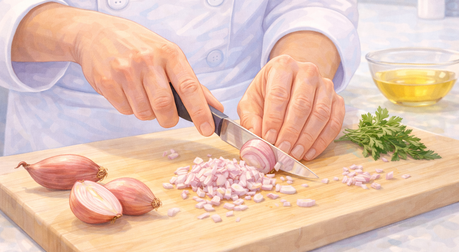 Because shallots are smaller than onions, precision cutting matters. Fine mincing allows them to melt seamlessly into sauces, while thin slicing works well for caramelisation.