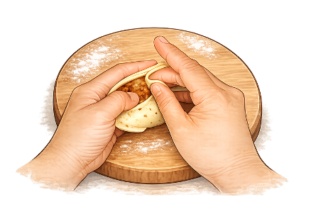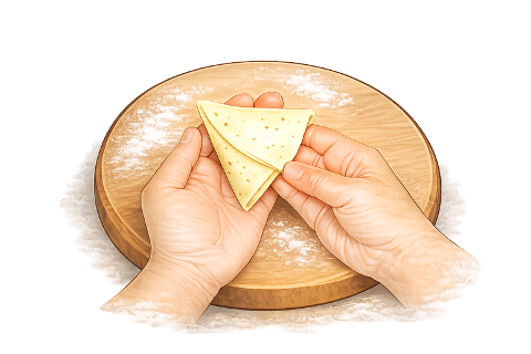 - , then bring edges together and seal into a triangular shape.