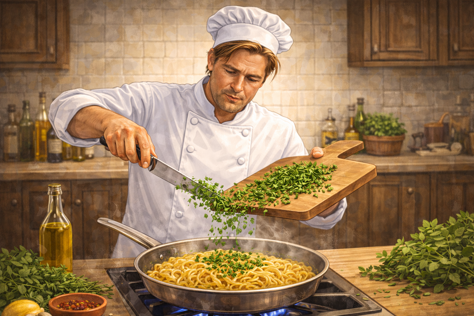 Italian cooks avoid this loss by adding fresh herbs when heat has already done its work. At that stage, the dish no longer needs cooking—it needs balance.